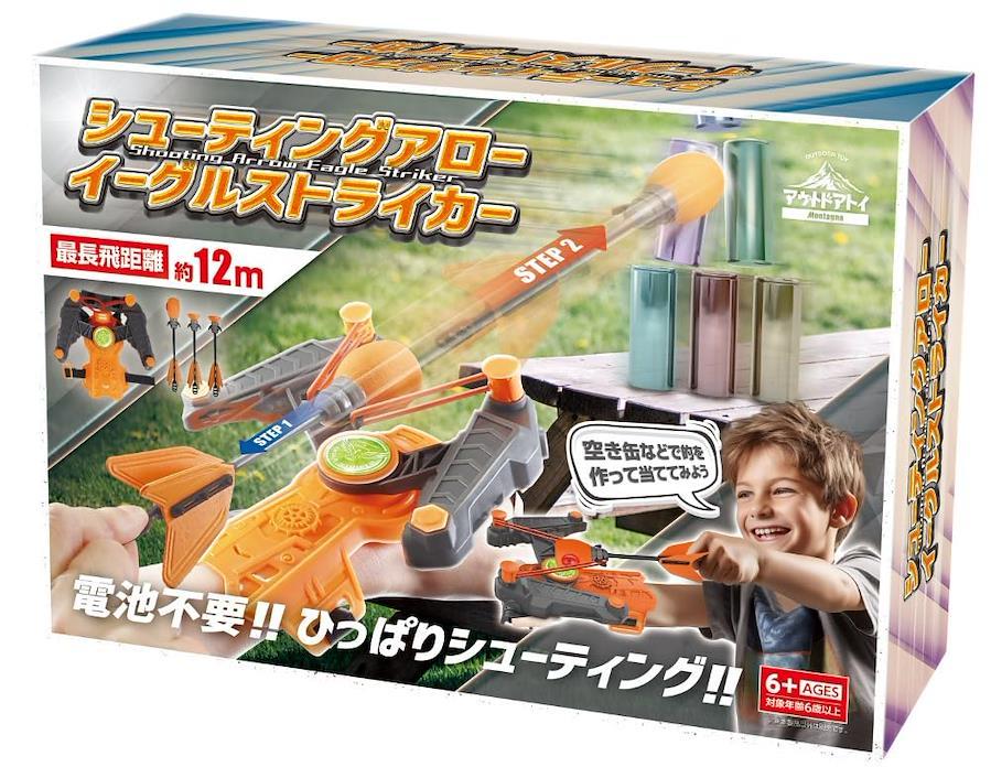 サイズ:約W16×D16×H5.5cm材質:PP・シリコーン、EVA・PP・ABSモンターナ シューティングアロー イーグルストライカー電池不要!ひっぱりシューティング!遠くまで飛ばしたり的を作ってあそぼう !(最長飛距離約12m)【免責事項】メーカーによる商品リニューアルに伴いパッケージ(内容量も含む)変更が行われた場合、新パッケージでお届け致します事ご了承願います。