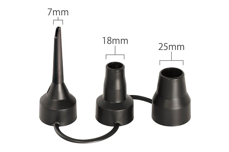 電源:DC12Vシガーソケット給電、ヒューズ:10A、消費電力:45W連続使用時間:約8分 ※8分以上連続使用しないでください。空気注入の目安:家庭用大型プール/約4分3種のノズル付き(7mm,18mm,25mm)ワンタッチで操作可能