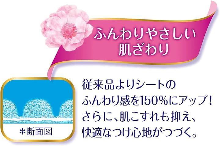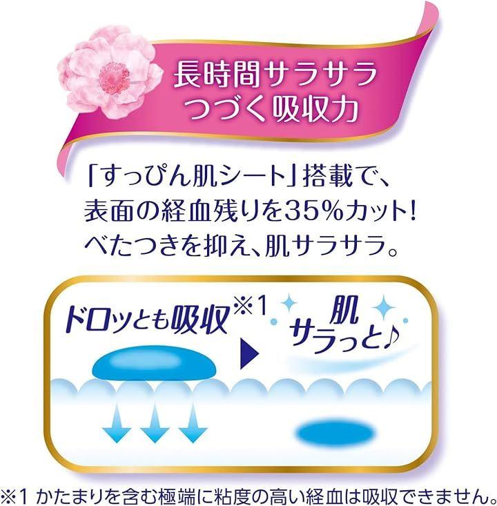 「すっぴん肌シート」搭載で、表面の経血のこりを35%カット。べたつきを抑え、肌サラサラ。