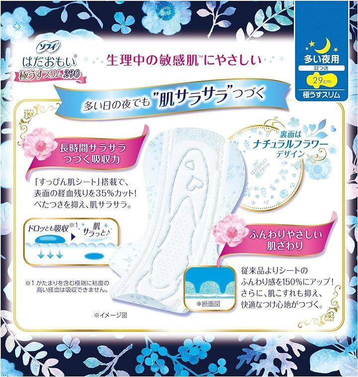 生理中の敏感肌にやさしい。長時間サラサラつづく吸収力。