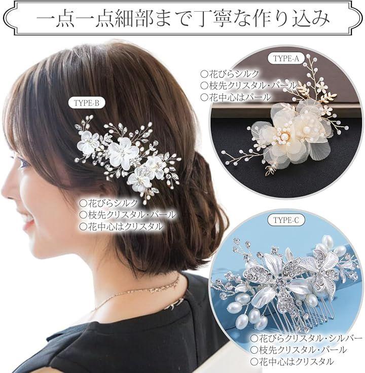 着物やドレスに合う髪にクリップで挟んだり、コームを挿すだけで簡単にヘアアレンジが出来ます。
