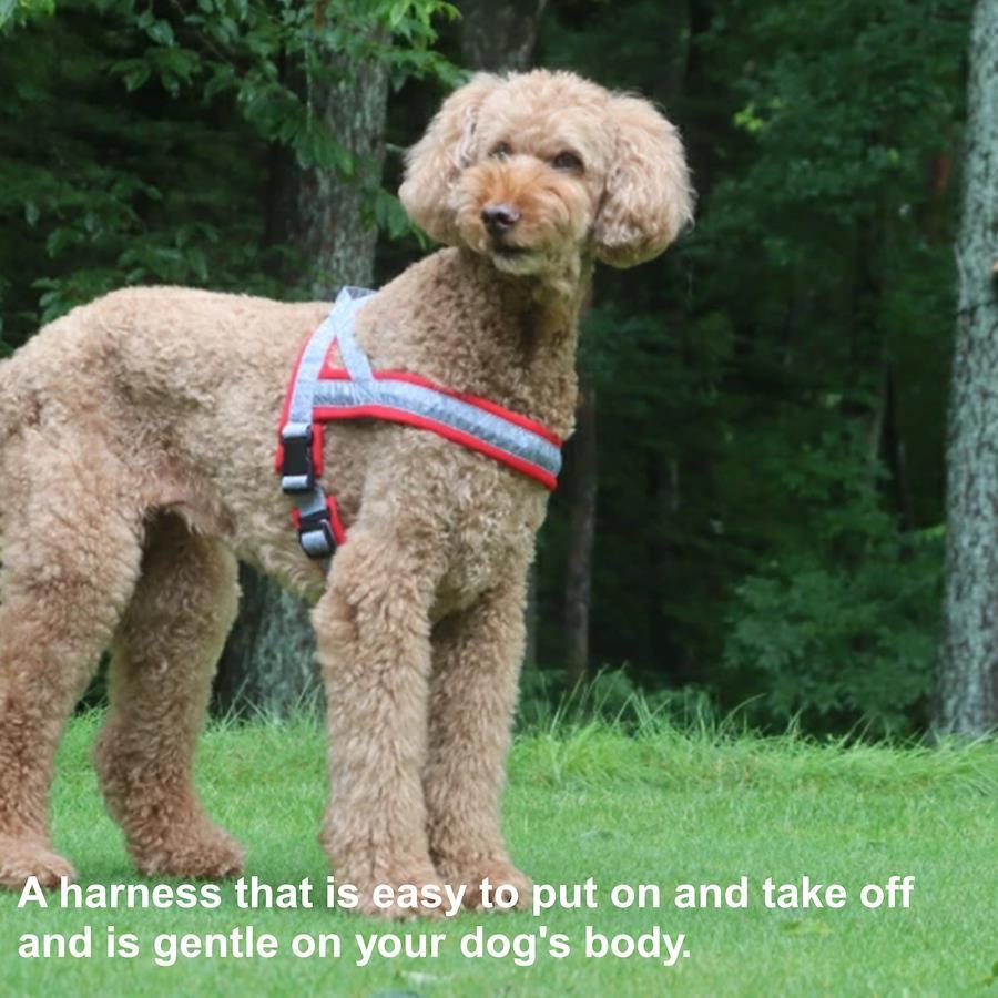 ・The latest upgraded model of Hakusan’s classic T-shaped “First Harness” with improved functionality and wearing comfort.・New dog harness model launched in “the year of the Rabbit” in the Japanese zodiac.・The traditional T-shaped dog harness is easy to put on and take off with its simple ergonomic design.・Lavishly padded with soft cushioning neoprene material, the highly durable and strong harness ensures a perfect fit for any kind of dog.・Equipped with bright reflective stitch lines sewn into the webbing, top-quality YKK plastic buckles and a useful handle on back.・Available in a wide range of colors and sizes.