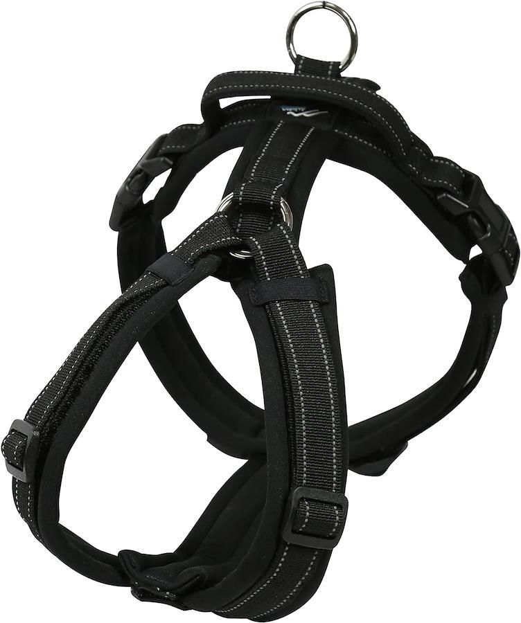・The inside is lavishly padded with soft cushion material, ensuring the best wearing comfort of your dog.・The innovative comfort-centered design reduces pulling, strain, constriction or any other pressure on the dog’s neck and trachea and allows the harness to stay in the right position.・Features a high-quality neoprene fabric with fast-drying function.・Adjustable on both neck and chest. Easy to fit on for many breeds.・Easy to attach/detach by using side buckles. No need to lift up the legs.・With a convenient handle. (Tiny,XXS size has no handle)・Available in a wide range of color options: the lineup includes bright, cheerful or dark tones, classical plain colors, various denim designs, and the traditional Japanese arabesque “Karakusa”.