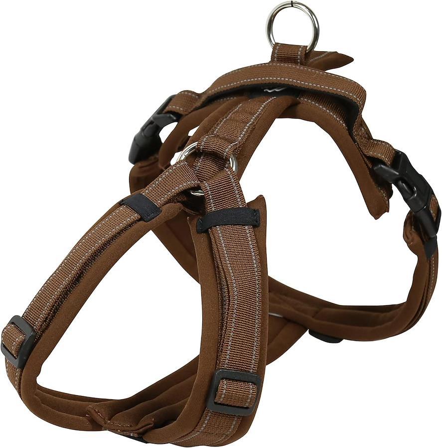 ・The inside is lavishly padded with soft cushion material, ensuring the best wearing comfort of your dog.・The innovative comfort-centered design reduces pulling, strain, constriction or any other pressure on the dog’s neck and trachea and allows the harness to stay in the right position.・Features a high-quality neoprene fabric with fast-drying function.・Adjustable on both neck and chest. Easy to fit on for many breeds.・Easy to attach/detach by using side buckles. No need to lift up the legs.・With a convenient handle. (Tiny,XXS size has no handle)・Available in a wide range of color options: the lineup includes bright, cheerful or dark tones, classical plain colors, various denim designs, and the traditional Japanese arabesque “Karakusa”.