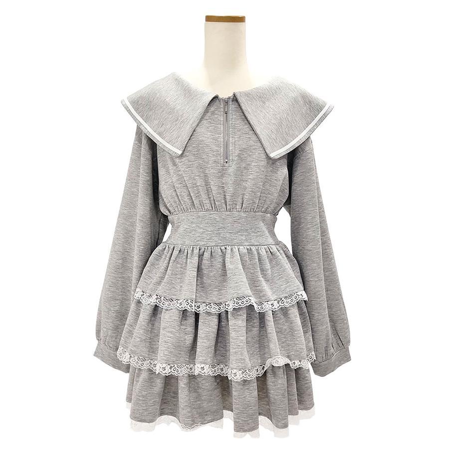 大きめ襟とふりふりティアードスカートがドッキングしたワンピース♪