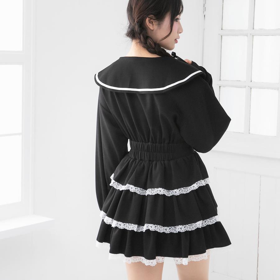 大きめ襟とふりふりティアードスカートがドッキングしたワンピース♪