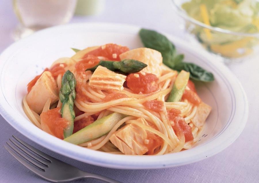 1.スパゲッティ100gに対し、お湯1リットル、塩小さじ1の割合で用意します。塩はお好みで加減してください。2.お湯が沸騰したらスパゲッティを入れてかきまぜます。3.標準ゆで時間は7分です。硬さはお好みで調整してください。4.ゆで上がりましたら水けを切り、あたたかいうちにお召し上がりください。