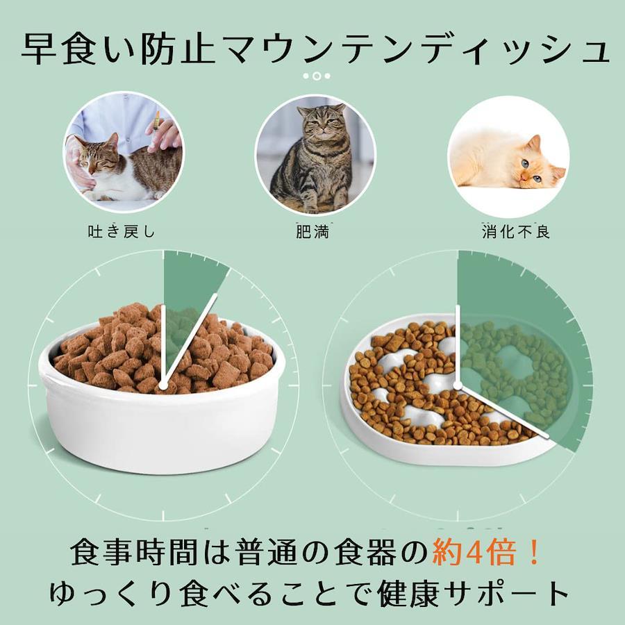 山のようなユニークなデザインの凸凹で早食いを防止。滑り止めのゴム付きでズレにくい構造。肥満や消化不良、喉つまりの軽減に。いつもの食事をゆっくり楽しませたい子へ。