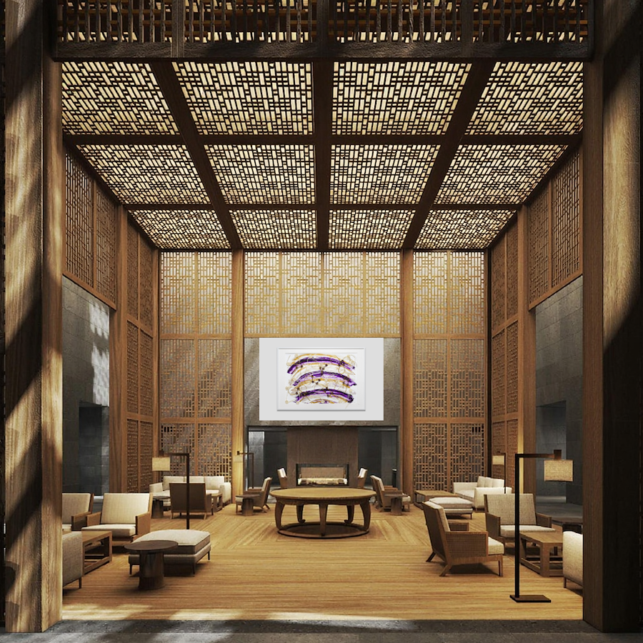 【アーティスト紹介】私は plum結び として、日本の伝統工芸「水引」を用いたアート作品を制作しています。水引は「人と人を結ぶ」「ご縁を結ぶ」「幸せを結ぶ」象徴として、古来より祝い事や大切な場面で用いられてきました。数ある水引の結びの中でも私は 梅結び が大好きです。梅結びは「忍耐力」「再生」「幸福」を象徴し、厳しい冬を越えて春に美しい花を咲かせることから「新しい始まり」の意味を持ちます。その力強さと優美さに深く惹かれた私は、すべての作品に必ず梅結びを取り入れることを大切にしています。そして「梅結び」を愛する気持ちをアーティスト名にも込め、plum結び と名乗ることにしました。作品を通じて「梅結び」のように人と人、心と心を結び、豊かさと調和を広げたいと願っています。【水引の歴史と縁起】水引の起源は飛鳥時代に遡り、遣隋使が持ち帰った贈答品に紅白の麻ひもが結ばれていたことが始まりとされています。以来、日本では水引は「魔除け」「清浄」「繁栄」を意味し、冠婚葬祭や贈答品に欠かせない縁起物となりました。結び方一つひとつに「長寿」「繁栄」「平和」といった祈りが込められており、受け取った人に幸運をもたらすと信じられています。【水引の構造について】水引は、細長く切った和紙をこより状にして糊で固め、色や光沢を加えて仕上げたものです。芯は紙でできているためとても軽く、柔らかさと張りを兼ね備えています。そのため、結びや折りの形が美しく残り、立体的で豊かな表現が可能になります。見た目は金属のように見えることもありますが、実際は和紙を基盤にした日本独自の素材です。【梅と日本文化】現代では桜が日本を代表する花とされていますが、古代日本では「花」といえば梅を指していました。『万葉集』にも梅を詠んだ歌が数多く残されており、梅は古来より日本人に愛され、特別な存在でした。梅は厳しい冬を越えて最初に花を咲かせることから、「希望」「新しい始まり」「生命力」の象徴とされてきました。また、その香り高い花は人々の心を和ませ、学びや芸術の象徴としても大切にされてきました。太宰府天満宮には現在でも約6,000本もの梅が植えられており、春になると境内は美しい梅の花で彩られます。梅は今もなお、日本文化の中で「希望と繁栄を告げる花」として、多くの人々に親しまれています。【アートとしての水引】私はこの歴史と精神を受け継ぎながら、伝統工芸である水引を現代アートとして昇華させています。水引と梅結びを用いた作品は、鑑賞する方の心を清め、空間に豊かさと調和をもたらす「縁起のアート」として世界に届けたいと願っています。【Happy Purple Butterfly – Wings of Awakening】この作品は、アルコールインクアートとアクリル絵具をベースに、紫と金の世界を背景に広がる「目覚めの蝶」をイメージして制作しました。紫は古来より「高貴」「精神性」「直感」を象徴する色とされ、金は「繁栄」「豊かさ」を意味します。その二つを重ね合わせることで、内なる覚醒と外なる繁栄の調和を表現しました。舞い飛ぶ蝶は、人生における「変容」や「新しい始まり」の象徴です。その羽ばたきは、古い自分を手放し、新しい光の世界へと飛び立つ勇気と祝福を示しています。作品には、水引で編んだ梅結びを蝶と共にあしらい、「幸福」「再生」「調和」の祈りを込めました。梅結びは厳しい冬を越えて花を咲かせる象徴であり、蝶と融合することで「困難を乗り越え、美しく羽ばたく力」を体現しています。高貴な紫の波動と、蝶の自由な羽ばたきが融合したこのアートは、空間に深い安らぎと気づきのエネルギーをもたらし、見る人の内面に新たな目覚めを呼び覚まします。作品タイトルには「Happy」を冠しています。これは、私のブランド名「Happiness Lead」 に由来し、「幸福を導く存在でありたい」という想いを込めています。同時に、この作品を手にした方のもとに幸福が訪れ、空間に明るく力強いエネルギーが広がることを願っています。水引の梅結びが持つ「忍耐・再生・幸福」の意味と、鑑賞する方に調和と希望をもたらし、豊かさの循環をサポートする「幸福を導くアート」となっています。【作品の特性について】●返品について: 本作品は一点物のオリジナルアートであるため、返品・交換は承っておりません。●色の変化について:アルコールインクアートは、経年により色調が変化する可能性があります。 ただし、この変化は「劣化」ではなく、時間とともに深まる独特の風合いをお楽しみいただければ幸いです。●水引の固定について: 本作品の水引は接着剤で固定しておりますが、重力や飾る環境(湿度・温度など)によっては剥がれる可能性があります。 強度を高めるため、重みのある部分は紙と水引を糸で縫い合わせる処理を施しておりますが、取り扱いの際には十分ご注意ください。【サイズ・素材】●技法:アルコールインクアート、アクリル絵