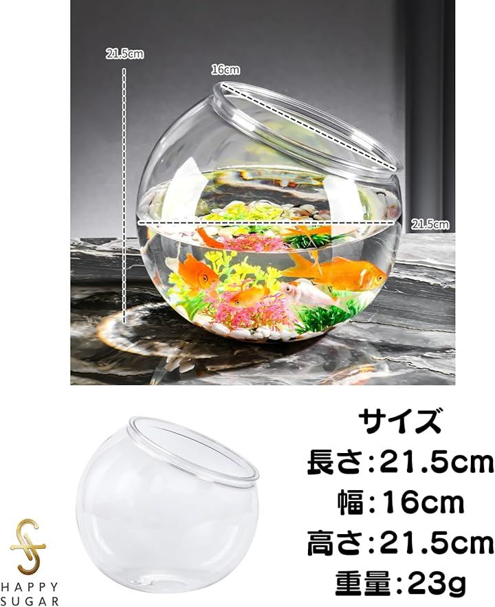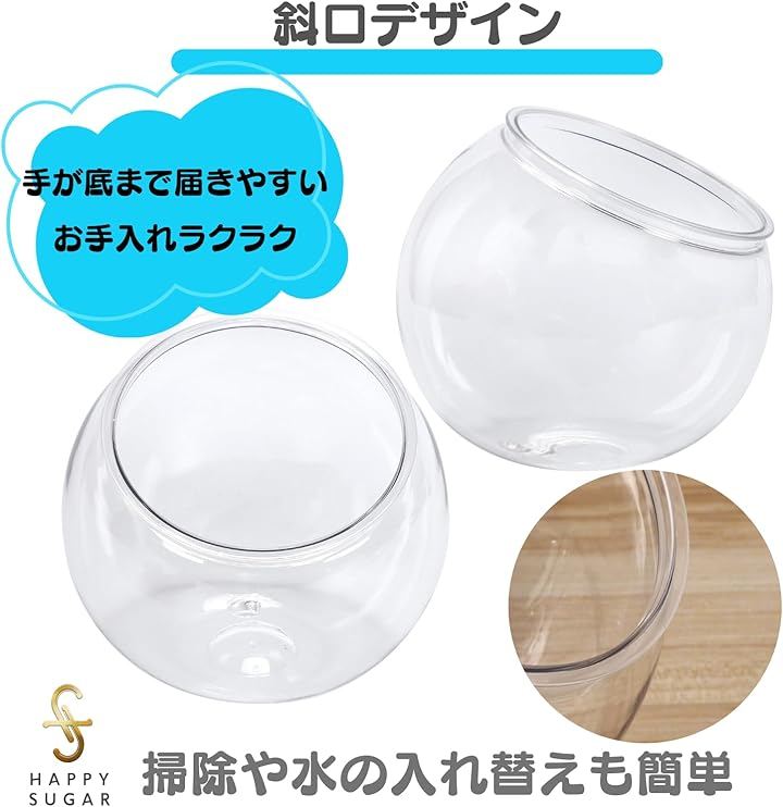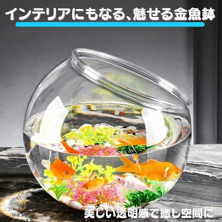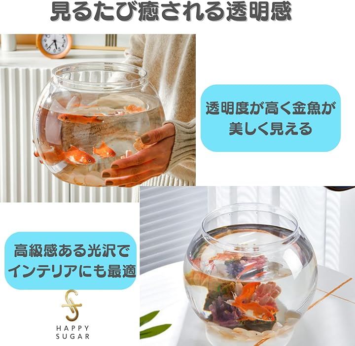 「高透明アクリル素材」透明度の高いアクリル素材を採用し、水中の金魚やメダカが美しく映えます。