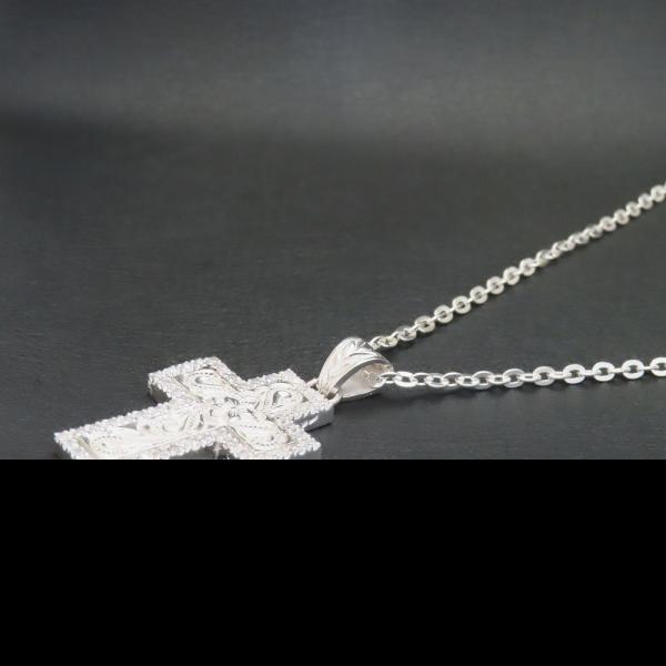 【モチーフ】 十字架、クロス、波、スクロール、花、フラワー、プルメリア、ハワイアンジュエリー、ハワイ ◆モチーフ意味 十字架といえばイエス・キリスト。 イエス・キリストは、人類を罪から救うため、十字架に磔刑に処されたといわれています。 そのため、十字架はキリスト教における救いのシンボルであり、特別な意味を持つ尊重されるべきしるしでもあるのです。 このような背景があるため、クロスは愛、救い、永遠、解放、生命力、復活など、多様な意味を持ちます。 また、クロスには守護の要素が強く、魔除けの効果があり、天からの加護や災いを跳ね返してくれる力が高まるともいわれています。 プルメリアの花言葉は「気品」「陽だまり」「恵まれた人」「情熱」「内気な乙女」です。 これらはプルメリアの香りや見た目からついたといわれています。 また「陽だまり」は、南国の暖かい土地で太陽を浴びながらたくさんの花をつけることが由来です。 砂浜に寄せては返すを繰り返す”波”は途切れることがないその動作は”永遠に続く愛”を意味し、婚約指輪や結婚指輪などのペアジュエリーによく用いられるデザインです。 またハワイでは海には神様がいると信じられ、海からの幸せを運んでくれる神聖なものとされています。 ◆商品名 ハワイアンクロスネックレス(PDT-369) ◆素材 シルバー925 スターリングシルバー ◆ペンダント寸法 縦44mm×横23mm(バチカン部分含む) ◆ストーン キュービックジルコニア ◆チェーン長さ 35~60cmの中からお好みの長さをお選び下さい。 2.7mmシルバー925小豆チェーン ◆付属品 ジュエリーBOX、ショップ袋、品質保証書 *プレゼント梱包出来ます ◆実店舗 JR帯広駅より徒歩5分の場所にある2012年オープンのフラッグシップショップ。 ジュエリー工房を併設し、常駐する職人自らと打ち合わせも可能なため、修理や加工、お客様のご希望に沿ったジュエリーもお作りすることが可能です。 ◆オススメ使用シーン ・様々な贈り物に プレゼント 贈り物 誕生日 誕プレ 誕生日プレゼント バースデー バースデイ 御祝 御祝い お祝い 母の日 父の日 クリスマス クリスマスプレゼント Xmas 春夏秋冬 春 成人 成人式 卒業 卒業式 進学 就職 入学 金婚式 銀婚式 出産 結婚 開店 開業 定年退職 退職 移動 転勤 バレンタイン バレンタインデー バレンタインデイホワイトデー ホワイトデイ ごほうび ご褒美 御褒美 ・想いを込めて ありがとう 感謝 ごめんなさい 許して ごめんね よろしく おめでとう おめでとうございます 仲直り ・こんな方に 自分 彼女 彼氏 大切な人 大切な方 お父さん お父様 父親 親父 父 お母さん お母様 母親 母 兄弟 姉妹 子供 おばあちゃん 祖母 おじいちゃん 祖父 奥さん 妻 旦那 旦那さん 先生 生徒 職場 先輩 後輩 上司 部下 同僚 友達 友人