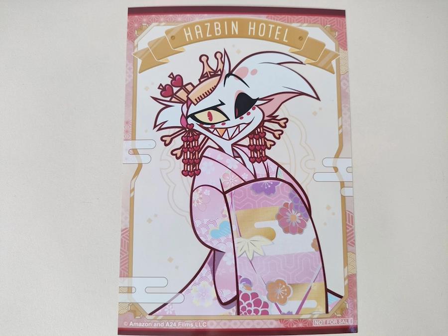 This limited-edition collaboration is not available internationally, making it a rare collector’s item for fans of Hazbin Hotel and VivziePop’s work.