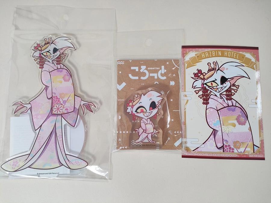 📒 Product DescriptionThis is an official Hazbin Hotel × Animate Japan Exclusive Collaboration Set featuring Angel Dust dressed in an elegant pink kimono design.