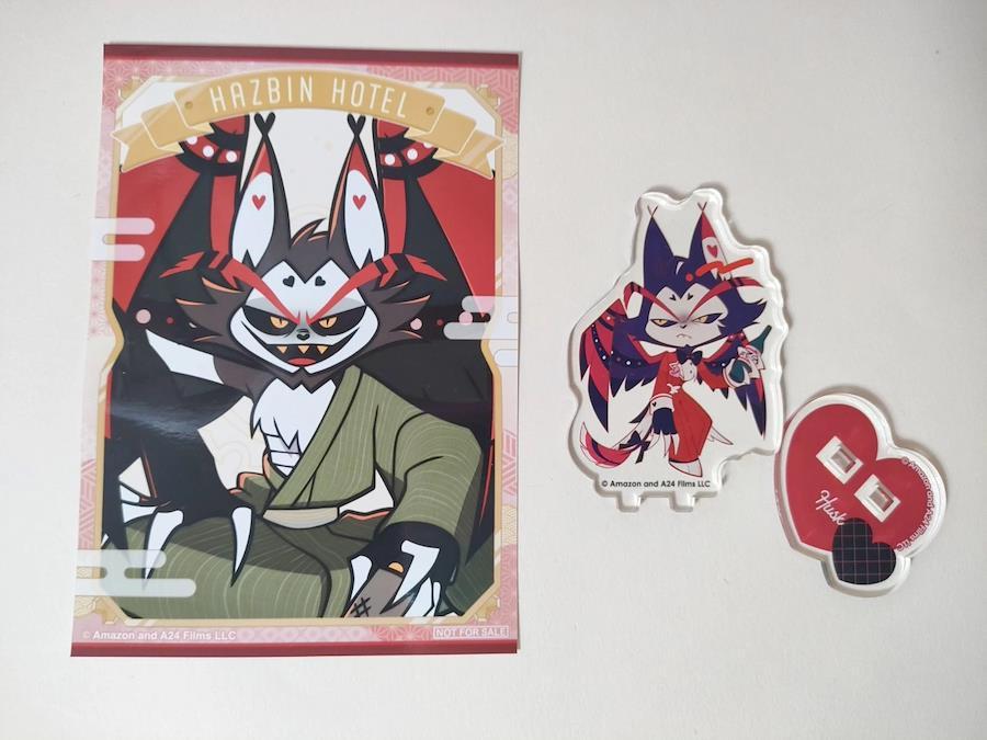 Hazbin Hotel Husk Set – Mini Acrylic Stand (Animate Cafe) & Kimono Ver. Bromide (Animate) – Japan Exclusive✨ Item DescriptionThis is a Japan-exclusive set from Hazbin Hotel featuring two different official collaborations: