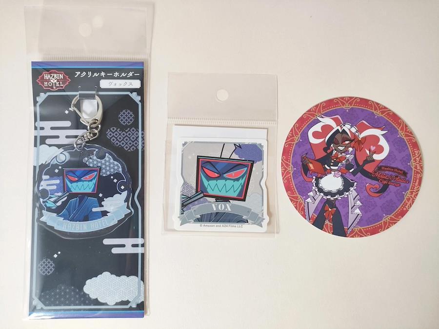 This rare set includes Vox’s Acrylic Keychain and Sticker from the Animate collaboration,and Velvet’s Cafe Coaster from the Animate Cafe event —items that were only available in Japan, making them must-have collectibles for Hazbin Hotel fans around the world.