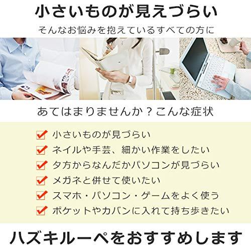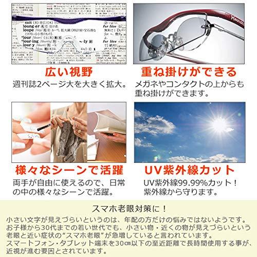 3営業日以内に発送≪新品未開封品≫:今話題のめがねタイプのルーペ。メガネやコンタクトレンズを付けたままでも使用でき、両手が使えるから様々なシーンで活用可能。日本製の安心品質だから歪みも無くハッキリと大きく見る事ができ、目も疲れにくい。柔らかいフレームは衝撃にも強くスタイリッシュなデザインも魅力。