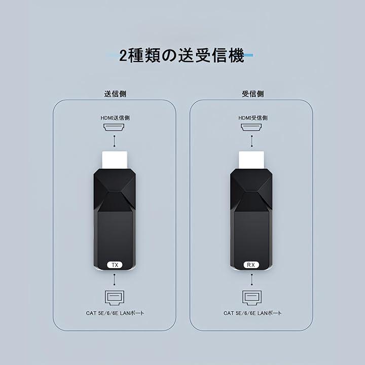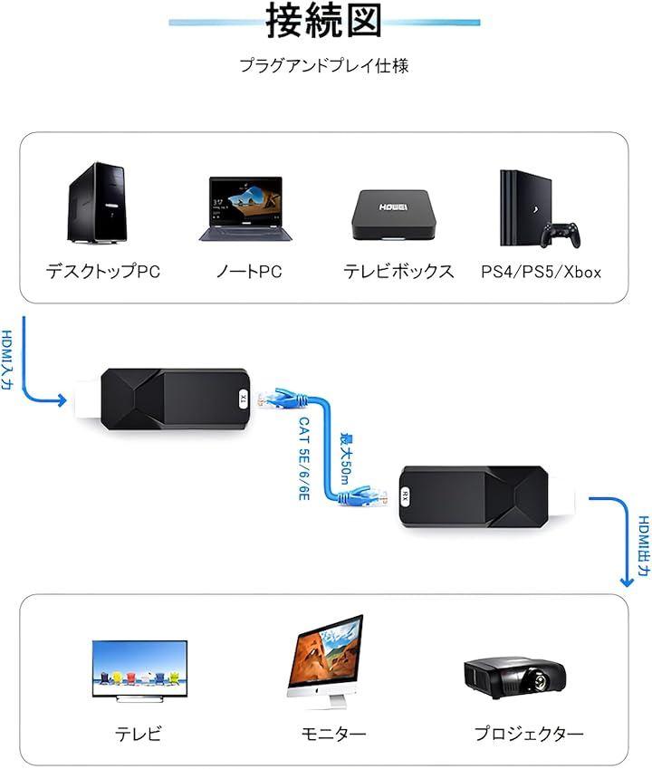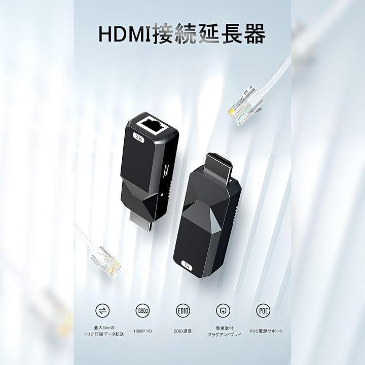 互換品HDMI エクステンダー to RJ45 LANケーブル CAT6 最大50m対応 USB電源 安定版 1080P フルHD 60Hz