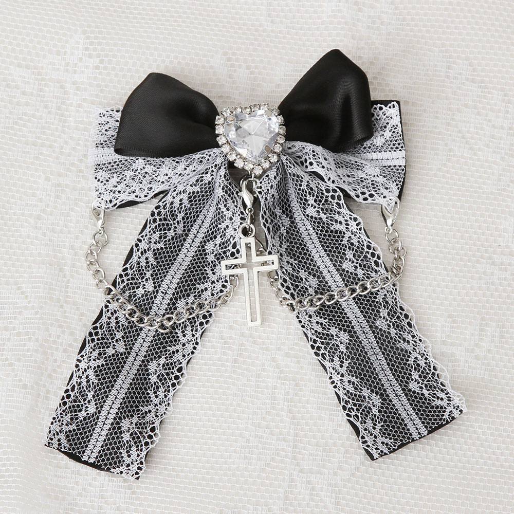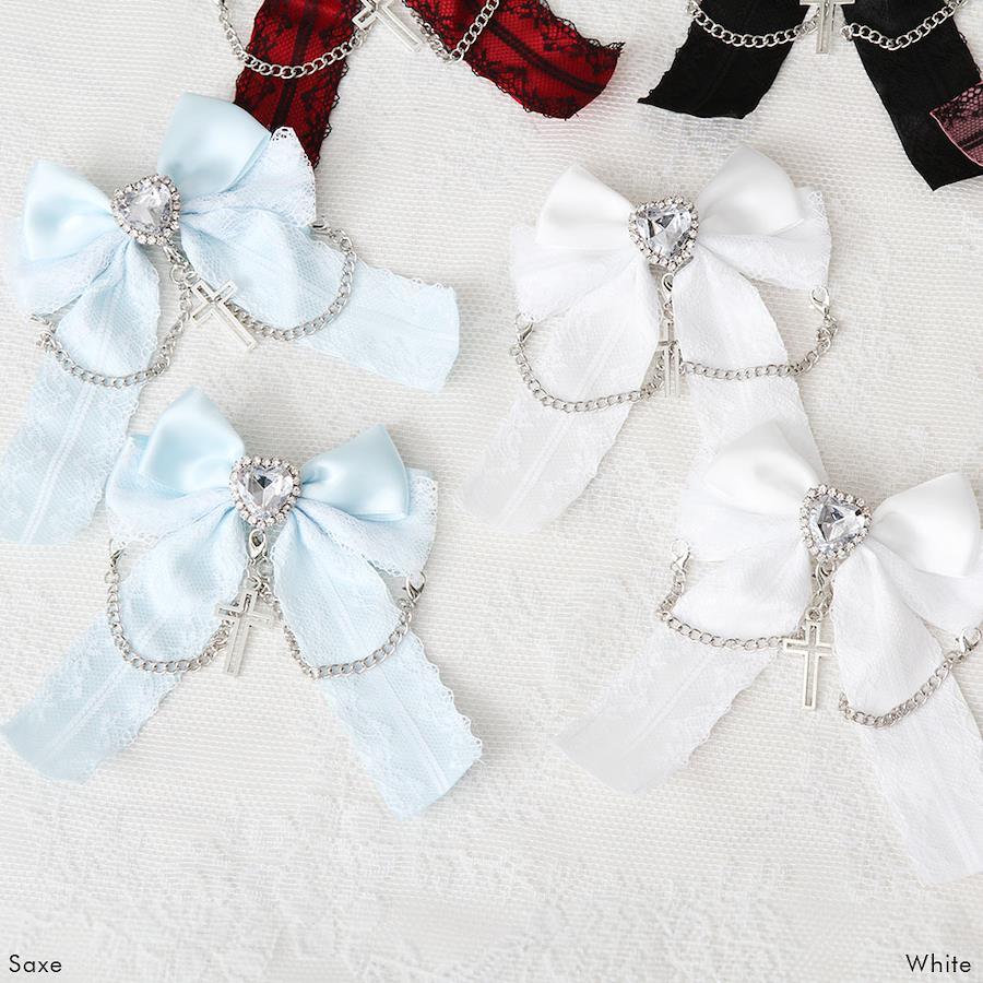 レースが重なったリボンに、キラキラのハートビジューがポイント♪