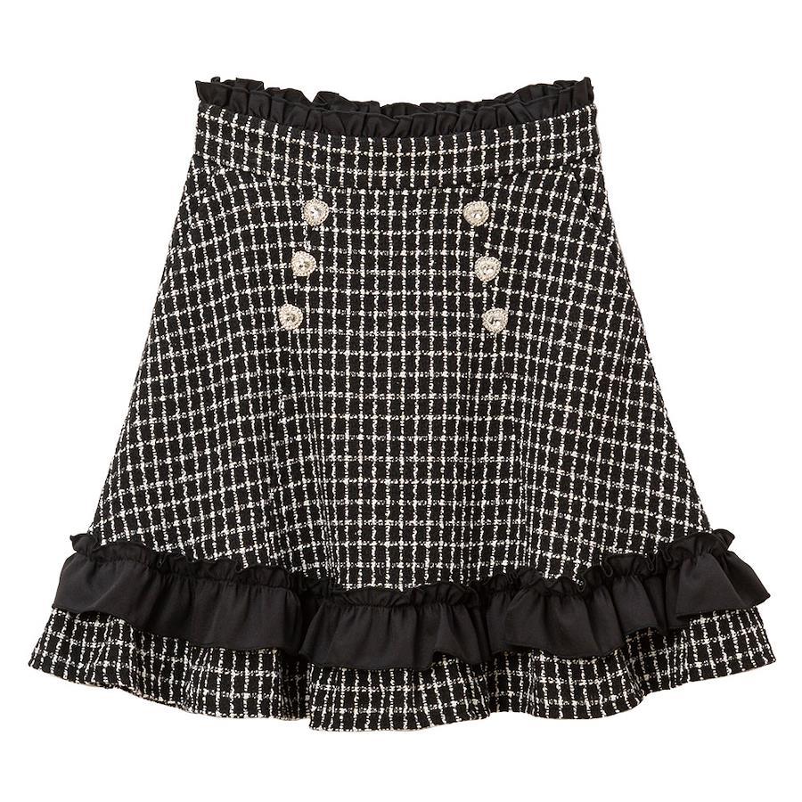かわいいツイードチェック生地に、無地フリルがポイントのスカート