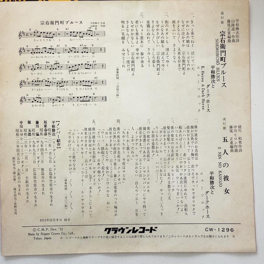 Heiwa Katsuji to Dark Horse Soemoncho Blues Five Girlfriends EP Record 7-inch Single Extended Play