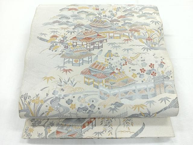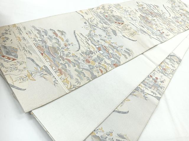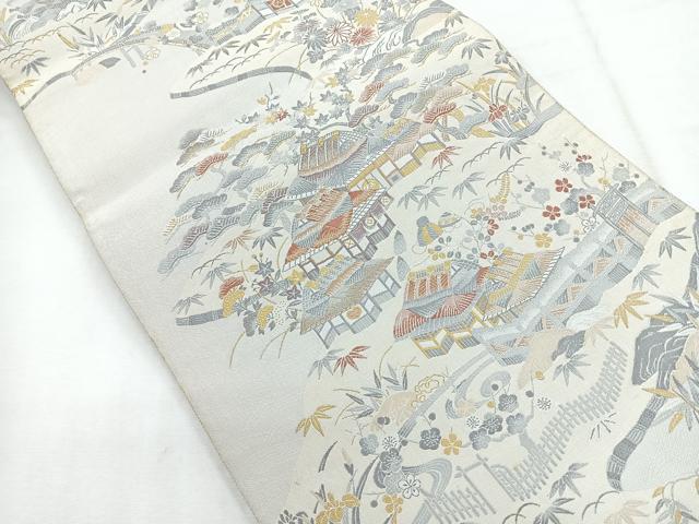 平和屋着物◎六通柄袋帯 彩園 金糸 正絹 逸品 CABE5929nb
