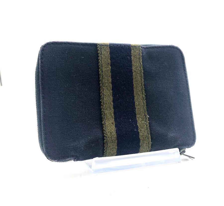 HERMES エルメス フールトゥパースPM ラウンドファスナー ミニ財布 コットンキャンバス ダークグレー×カーキ フランス製 布タグあり