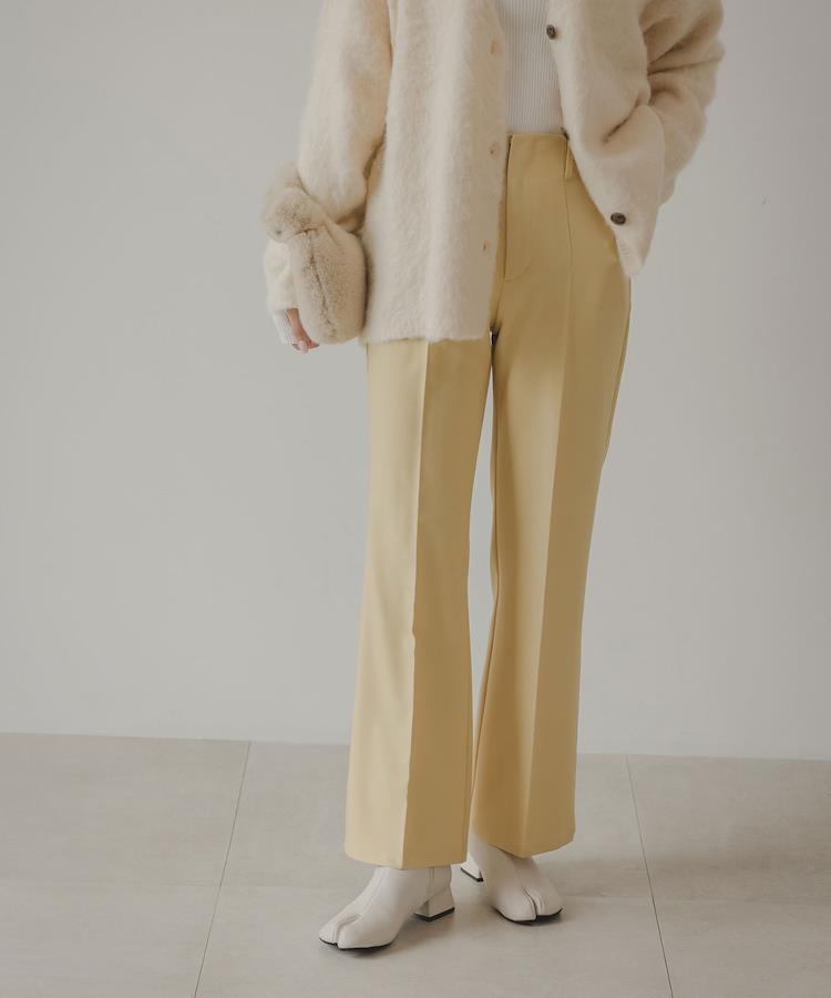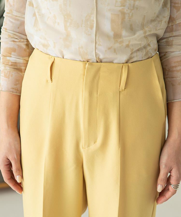 美しいラインにこだわったスラックスパンツウエスト位置を高く見せるハイウエストデザインがインスタイルを美しく見せます。内側にはホックとボタンが付いており、ウエストにしっかりとフィット。バックウエストにはあえてギャザーを入れずもたつきを解消することで、ヒップラインを美しく見せてくれます。センタープレスを施しているので、縦ラインが強調されスタイルアップ効果も◎オールシーズン使えるエステルツイル素材はややストレッチ性があり動きやすく、且つシルエットも綺麗に見せてくれる優秀なテキスタイルさらっとした履き心地ですが、生地に程良く肉感があるので透け感も気にせず着用できます。ご自宅で手洗い可能なイージーケアも嬉しいポイント。トップス次第で雰囲気が大きく変わるので、オンオフ問わず着回しできる1枚です。**********************透け感:なし裏地:なし伸縮性:若干あり光沢感:なし生地の厚さ:普通**********************《生産国》中国
