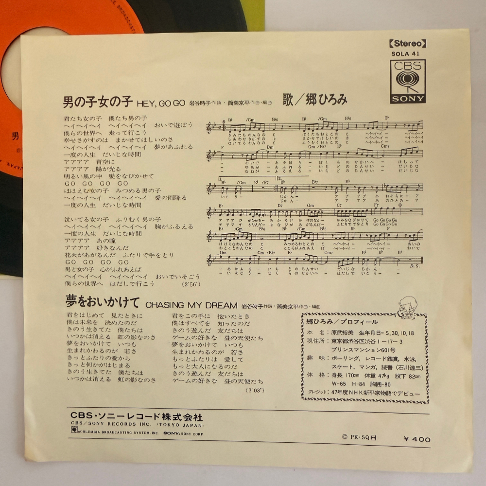Hiromi Go Showa Vintage EP Record Boys and Girls Chasing Dreams 7-inch Extended Play