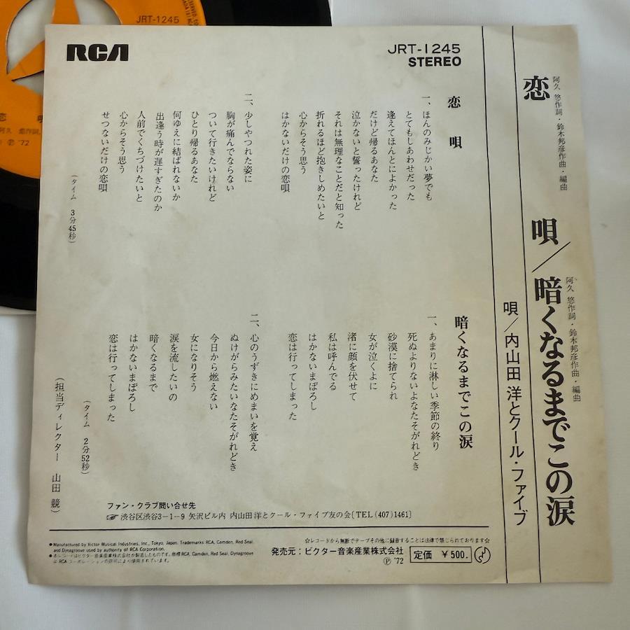 Hiroshi Uchiyamada and Cool Five Showa Era Vintage EP Record Love Song "Kuruma Made Kono Namida" 7-inch Extended Play