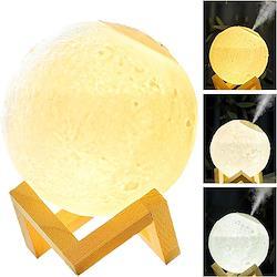 月型 加湿器 ムーンライト 3色ライト USB給電式 小型 卓上 インテリア 木製スタンド 乾燥対策 オフィス リビング 寝室