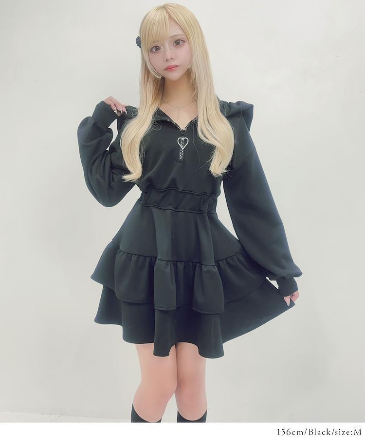 ◆Designフェミニンで華やかなフリルやティアードデザインが加わったワンピースです。フードが付いているため、カジュアル感もあり可愛さも増し増しです。ウエストでキュっと絞れてスタイルアップ。フロントジップのキラキラデザインまで拘りました。脇はレースで肌魅せデザイン。軽やかなポンチ素材で着心地も◎