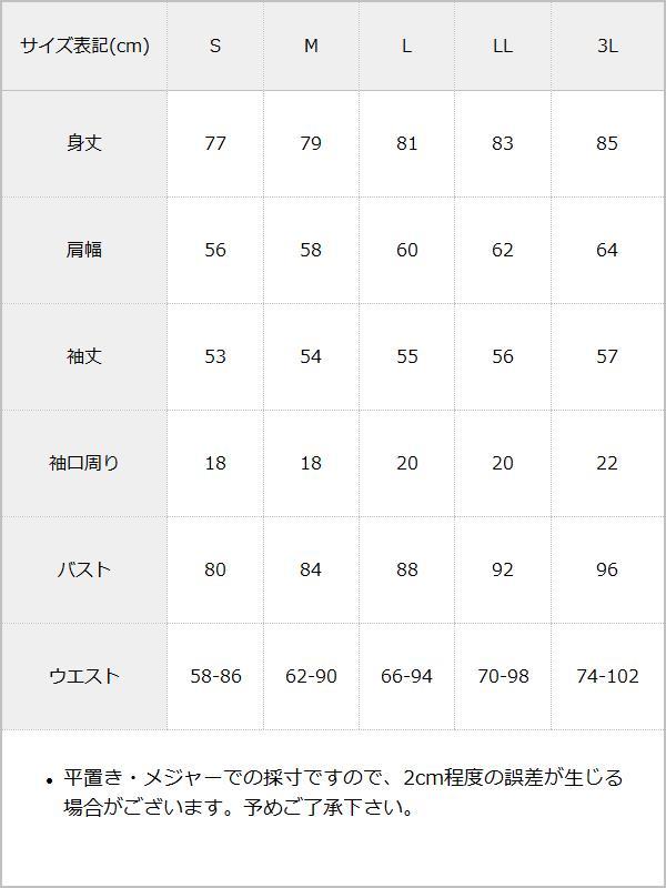 S M L LL 3L