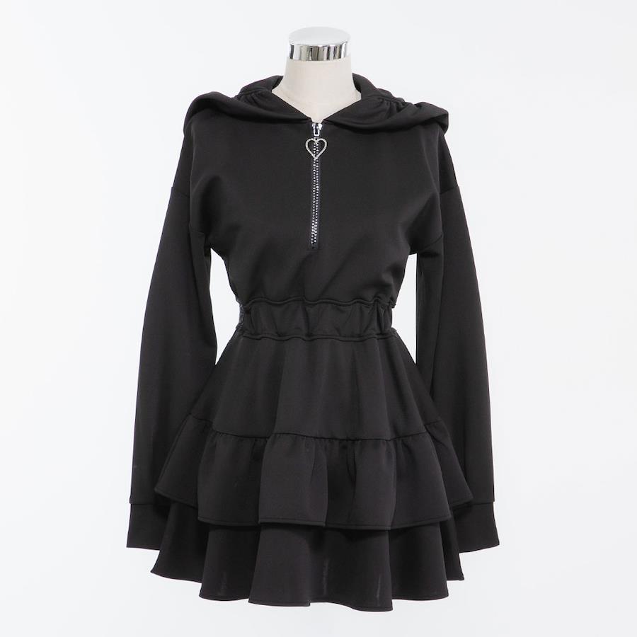 フードフリルティアードワンピ