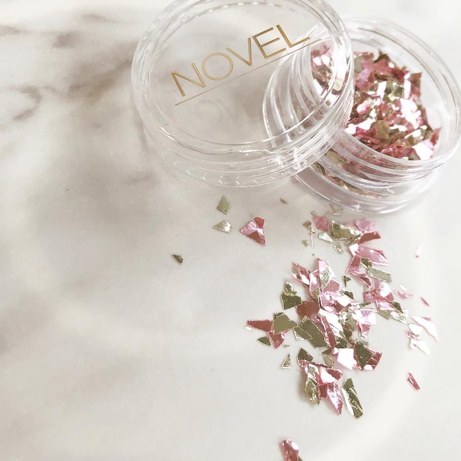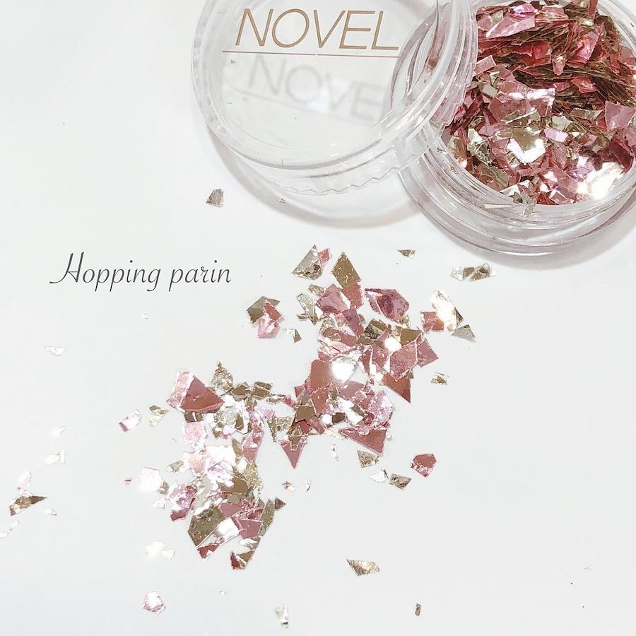 こちらはシャンパンとピンクの乱切りのホロがミックスされたアイテムになります。ワンポイントに使用したり、アクリルに埋め込んで頂いたりラメの上に少しちらしてい頂くのもオススメです。