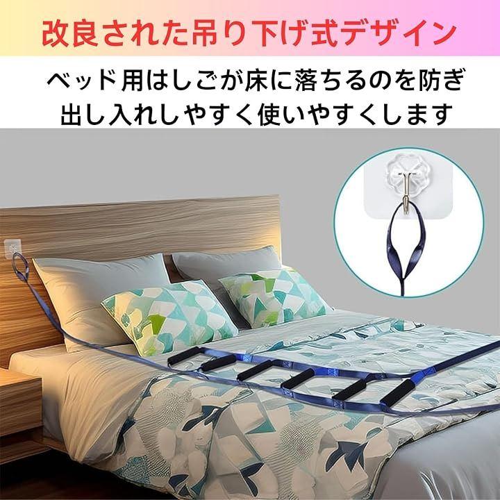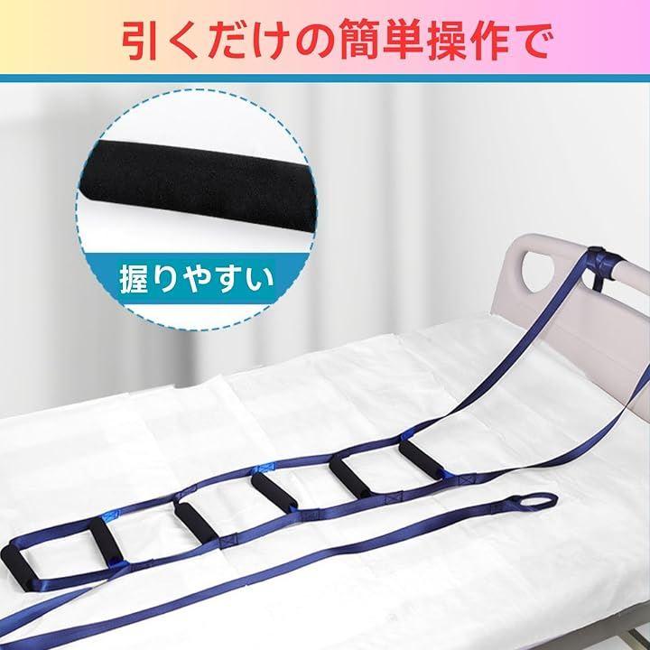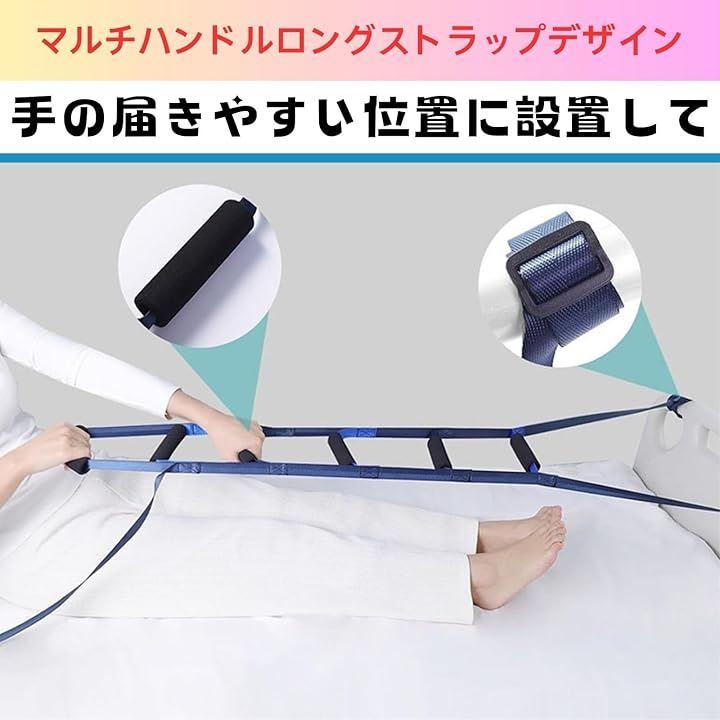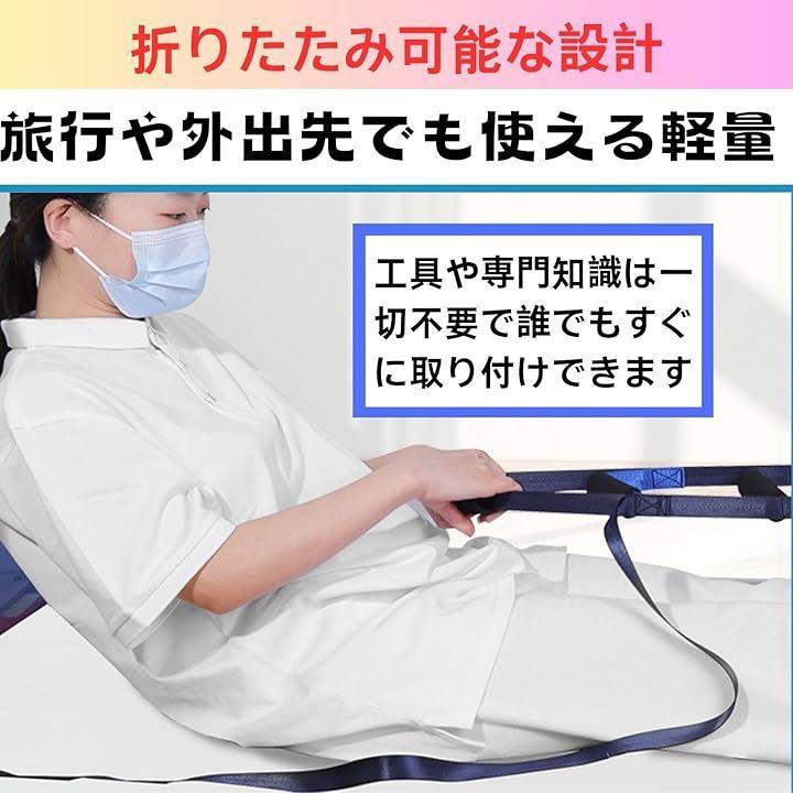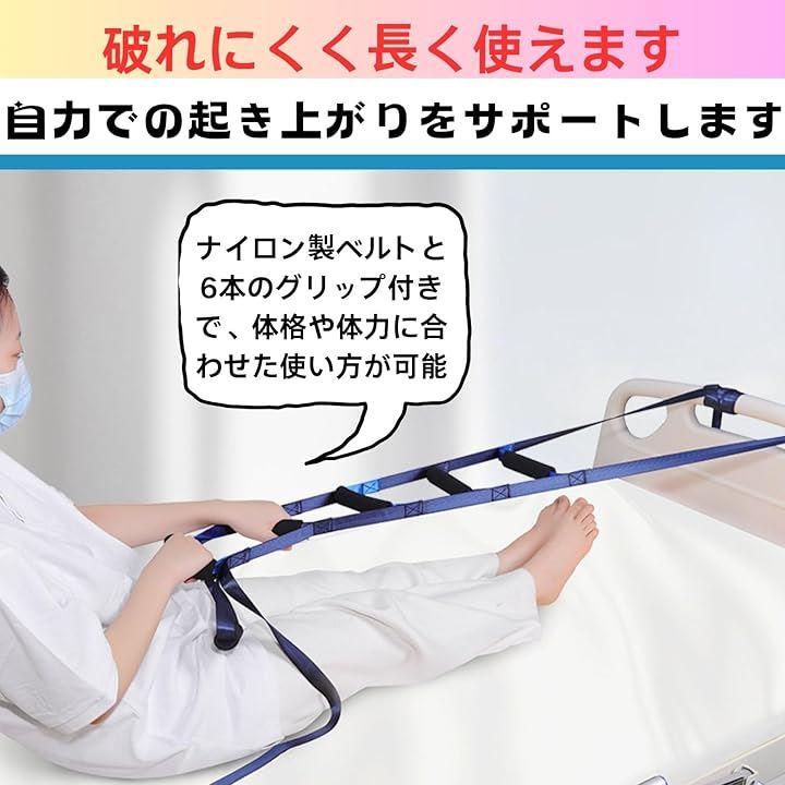誰でも簡単に使える起き上がり補助ツール ナイロン製ベルトと6本のグリップ付きで、体格や体力に合わせた使い方が可能。