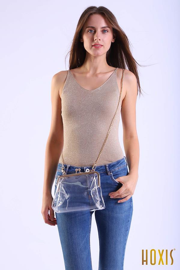 [Hoxis] (ホクシス) 透明 ビニール チェーン付き がま口バッグ 2way ショルダーバッグ クラッチバッグ 痛バッグ おしゃれ レディース
