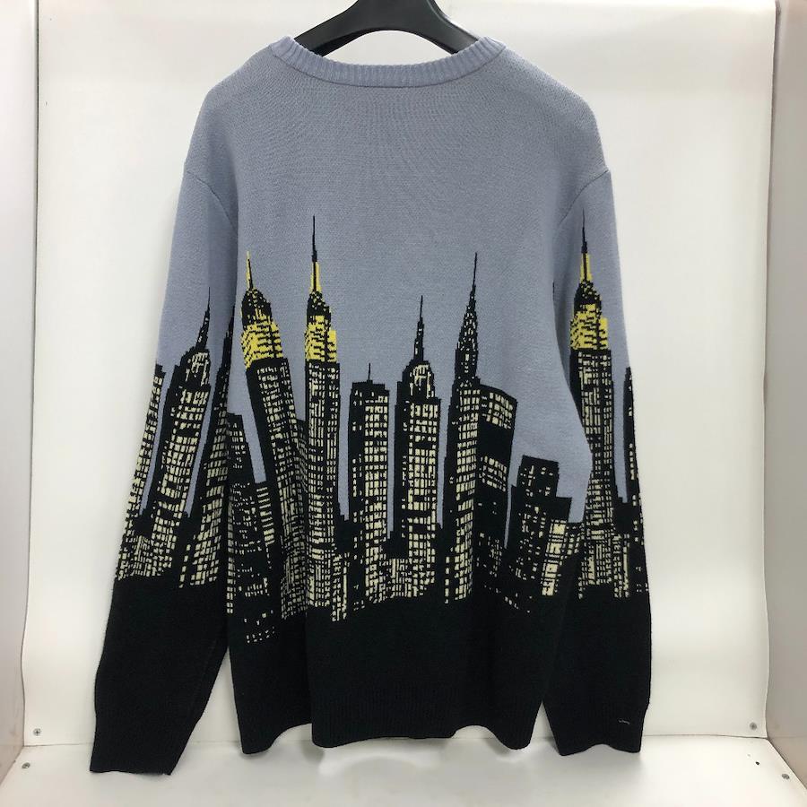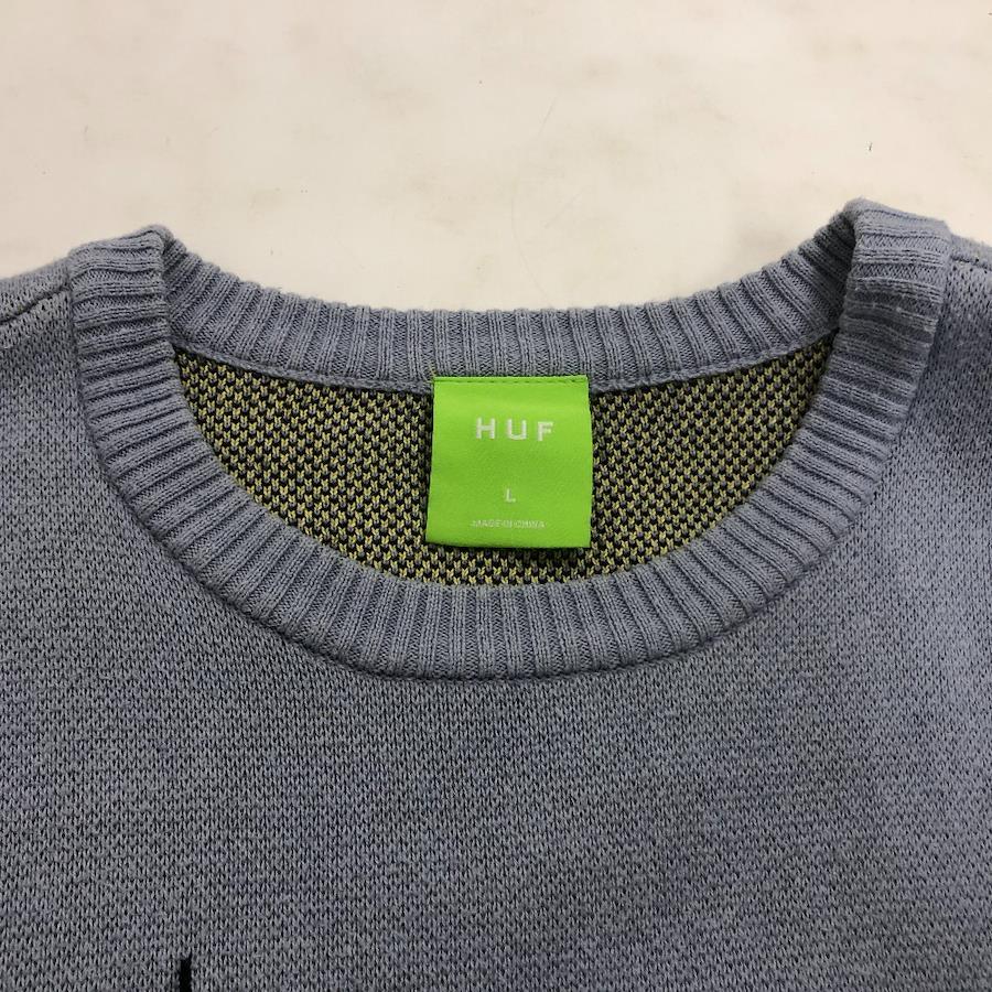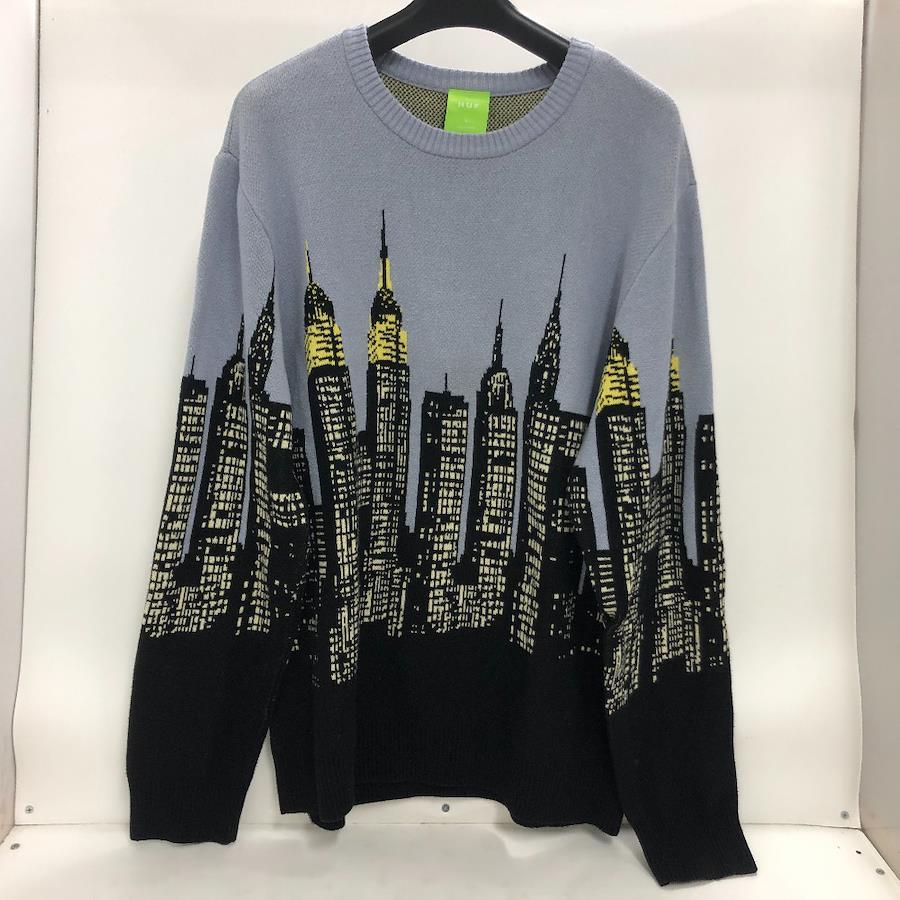 HUF SKYLINE CREW SWEATER Light blue サイズL ChinaMade in mens knit cotton KN00387 02w19224