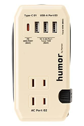 通常1-5営業日で発送:旅行先やオフィス、在宅ワークでも大活躍!同時に複数の機器を充電できるコンパクトなAC&USBタップ「humor(ユーモア) handy Plus」