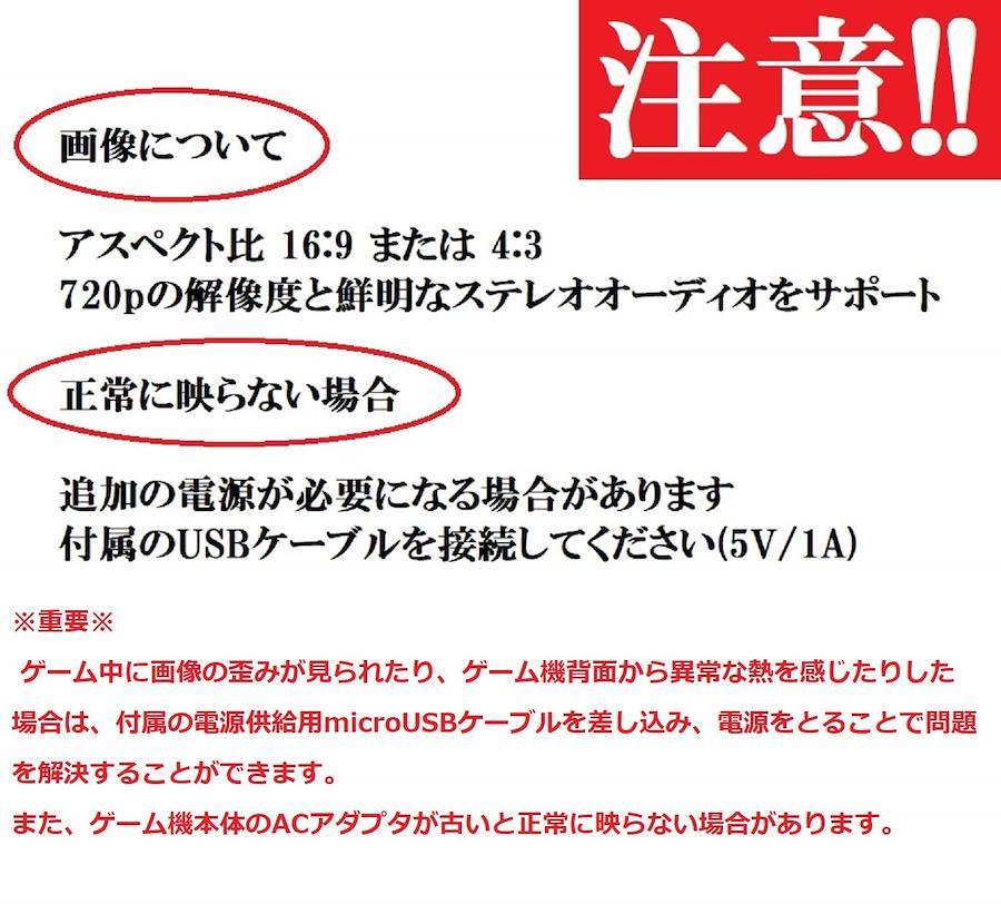 This adapter allows you to output video from Mega Drive Genesis (models 1, 2, and 3) to an HDTV. This adapter allows you to output video from Mega Drive Genesis (models 1, 2, and 3) to an HDTV Supports switching between 16:9 or 4:3 aspect ratio Support 720p resolution and crisp stereo audio - image looks better when used on 4k TV Product from the same design company as "POUND HD LINK CABLE" If it does not look properly* Additional power supply may be required (please connect the included USB cable to power supply). In addition, when the AC adapter on the game console is old, it may not appear normal