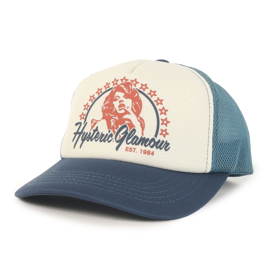 HYSTERIC GLAMOUR ヒステリックグラマー キャップ ブルー サイズ:FREE | Speedster トラッカー メッシュキャップ / MADE IN JAPAN | ブランド 帽子【メンズ】【中古】【K4793】