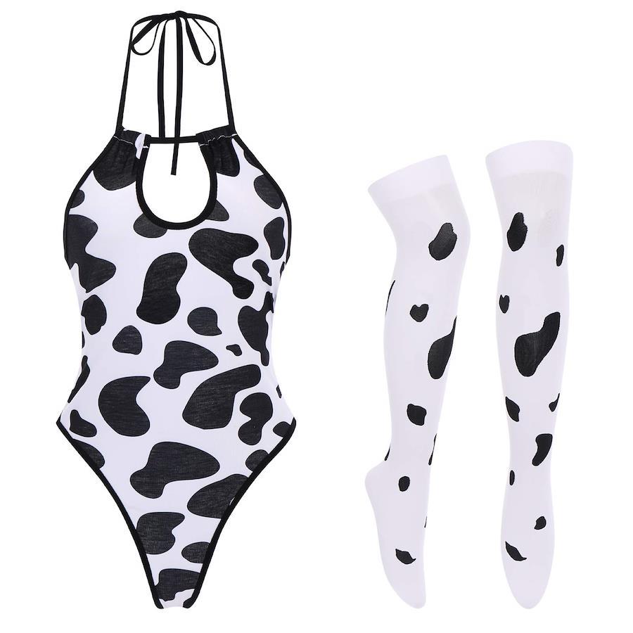 : ビキニ1PC + ストッキング1組2、仕様:?カラー:写真のように?素材:ポリエステル フランネル スパンデックス?特徴:ミルク牛パターン、調節可能なストラップ?性別:女性?サイズ:ワンサイズ平置き採寸のため、1-3CMの誤差が生じる場合がございます。予めご了承くださいませ。スタイルA: