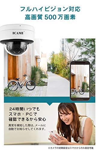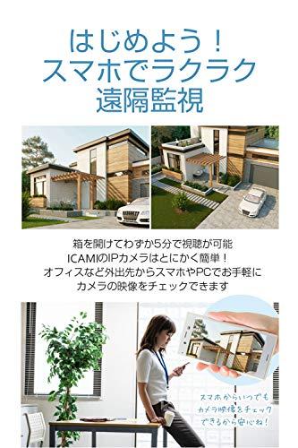【5MP HD&暗視IR- CUT】【1】5MP HD:2560*1920、フルHD 5MPの高解像度IPカメラによる鮮明な録画映像と広角撮影可能。有効500万画素の高性能CMOSセンサーを搭載し、Smart HDR技術採用し、繊細なハイビジョン表示効果を実現できます。【2】IR-CUT知能暗視撮影:12個赤外線LED搭載し赤外照射距離は15メートルで、昼も夜も問わず鮮明に録画します!IR-CUT智能切り替えるシステムを採用して、速く昼夜を切り替えます。最先端の暗処ビジョン処理機能で、真っ暗の場所でもハイビジョンの画像を撮ります。【動体検知アラーム&音声録画機能】【1】動体検知アラーム機能:スマート検知システムが付いて、不審者などは侵入する場合、動体検知機能が起動し、画像を取り次第すぐアラーム通知を発信し、スマホにお知らせます。【2】音声録画機能:特製マイク内蔵され、音はよりはっきりして、更に安定して音声録画します。スマホ・パソコンでリアルタイム画面にカメラ側からの音声が聞き取れるし(一方向オーディオ)。【技適認証済み&12ヶ月サービス保証】【1】 電波法を無視した違法な商品の流通が多数見受けられますが、弊社のこのカメラは技適マークを取得し、安心で安全な製品を提供します。 技適認証番号:R210-136955【2】12ヶ月サービス保証:ICAMI ネットワークカメラは12ヶ月のサービス保証期限があります。【優れる耐久性&防水機能】【1】優れる防水機能:高品質のアルミニウム、 ABS材質を採用、防水性能IP66レベルで、夏の強い日差しや風雨など悪状況でも対応できる防犯監視カメラになります。【2】優れる耐久性:優れた耐久性があり、作業温度-10~-55°度、作業湿度85 %。複雑な屋外環境に対応可能、長く使用頂け、場所や季節を問わずにいつでもご愛用できる商品です。【sdカード録画&遠隔監視】ICAMI ネットワークカメラが二つの録画技術を採用します。【1】カメラにSDカードを装着すれば(別途で購入)、映像をSDカードに録画することが出来ます。常時録画や動体検知等の機能に保存出来ます。(microSDカード最大128GB対応)【2】遠隔監視:距離がどんな離れていても、スマホ・タブレット・パソコンを使って(お家、ご両親、お子様、ペット、仕事場)全ての状況が把握出来ます。?もっと見る