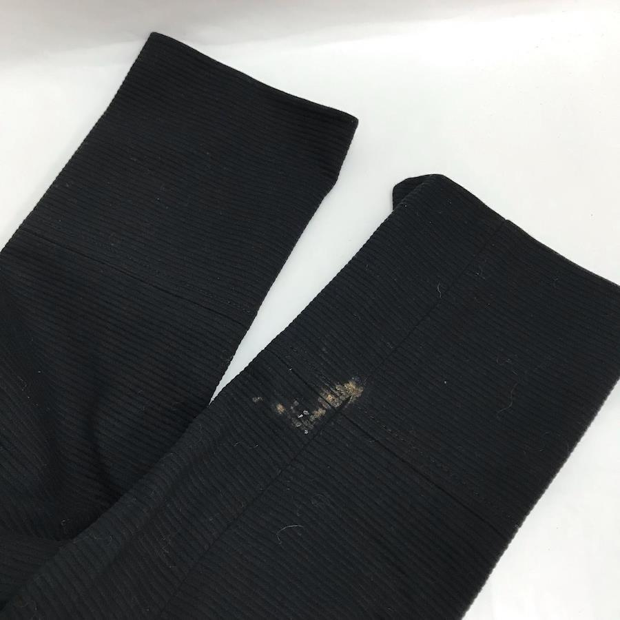 袖に汚れ・シミがございます。落ちる範囲かと思いますので、お手数ですが手洗い・つけ置きでのシミ抜き、またはクリーニングしてからのご使用をお願い致します。