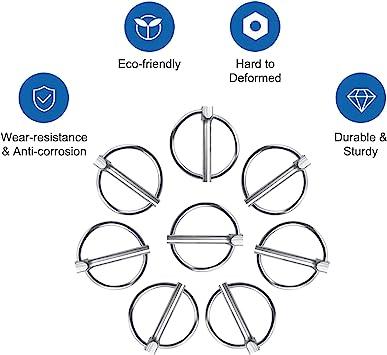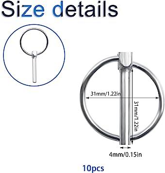 通常1-5営業日で発送:INCREWAYリンチピン, 10PCS耐久性のある金属製トレーラーロックピン丸型リンチ保持ピントラックファーム芝生用ロックピンファスナー, 銀, 直径0.15mm