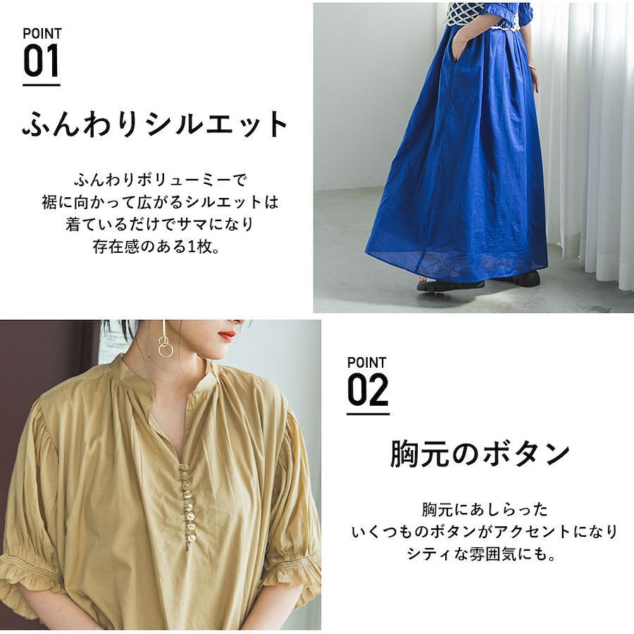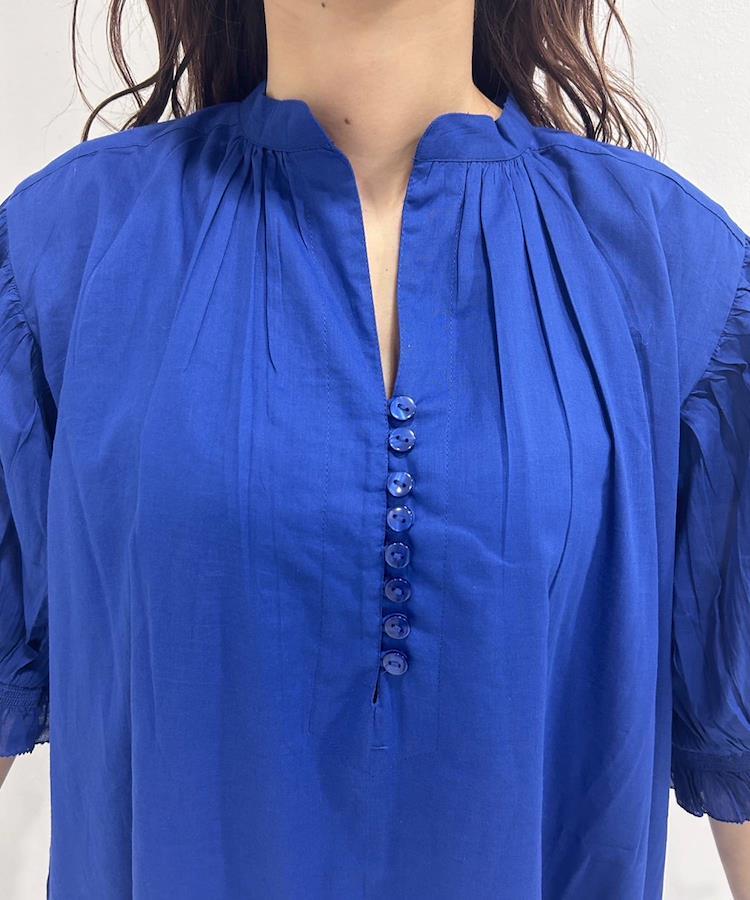 重さが無く軽やかな着心地が快適に夏を過ごせます。ポイントになるギャザーをあしらった袖は窮屈感がなく、女性らしさも演出。