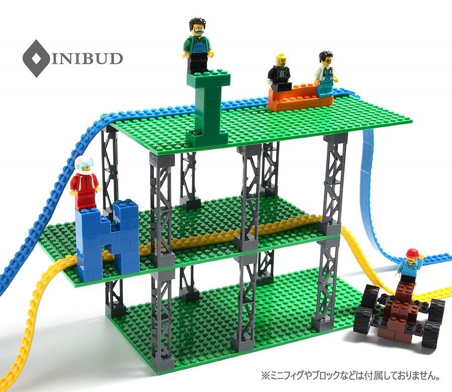 ■商品名INIBUD 基礎板 ブロック プレート クラシック 互換性 16×32ポッチ 両面 柱付き 板3枚 柱12本 セット (グリーン)