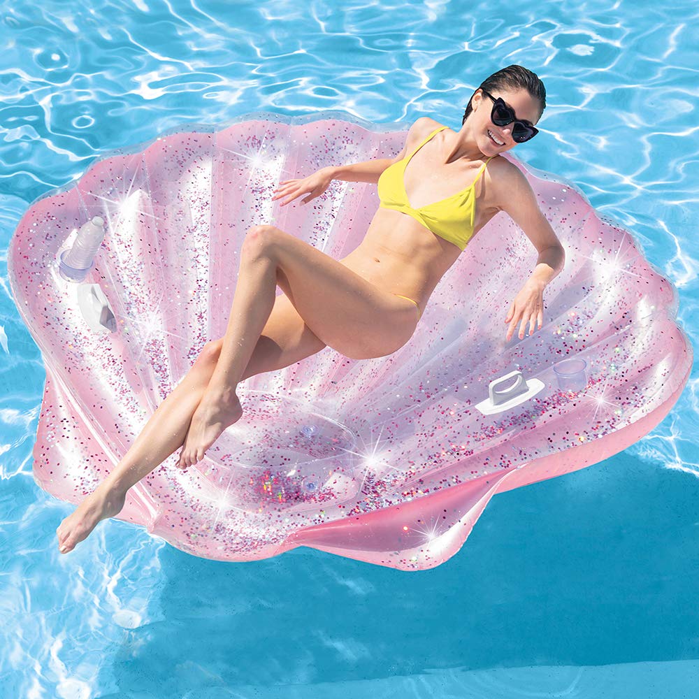 製品サイズ:(約)178×165×24cm製品重量:(約)2.73kg材質:PVC(塩化ビニル樹脂・非フタル酸系可塑剤使用)-98%、PET-2%付属品:修理用パッチ原産国:中国INTEX社製、ラメ入りのシェル型マット。持ち手が2か所に付いています。ドリンクホルダーが2か所に付いています。ご注意:子供の一人遊びは危険です。必ず保護者のもとで背の立つ深さのところで遊ばせてください。お子様が怪我をしないよう、必ず大人の監視の下でご使用下さい。レンタル等による貸出、オークション等による販売や中古販売、及び譲渡によって発生した故障・破損・損害・事故などにつきましては一切責任を負いかねますので予めご了承ください。(より) 製品サイズ:(約)178×165×24cm 製品重量:(約)2.73kg 材質:PVC(塩化ビニル樹脂・非フタル酸系可塑剤使用)-98%、PET-2% 付属品:修理用パッチ 原産国:中国