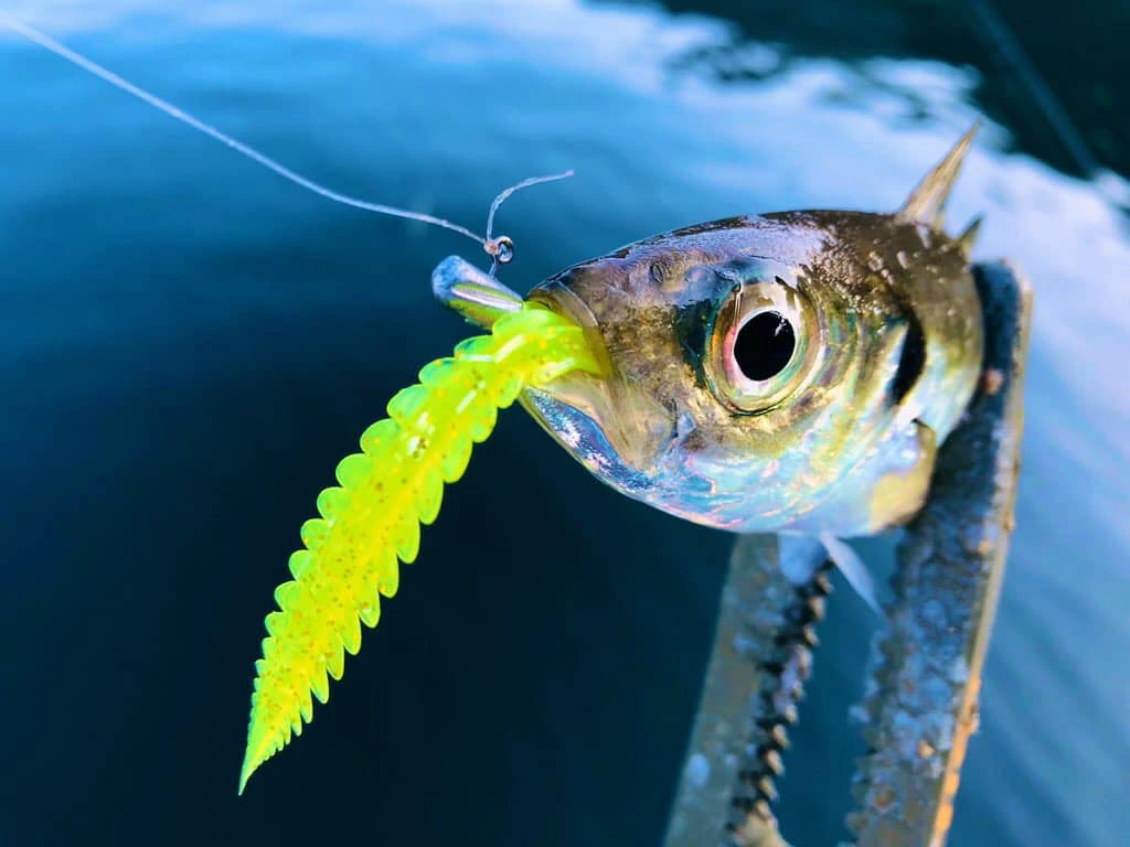 一般的な感覚ではアジングに3Inchは少し大きすぎる印象を与えるであろうが、見事にヘッド部を狙って喰ってくるのは、