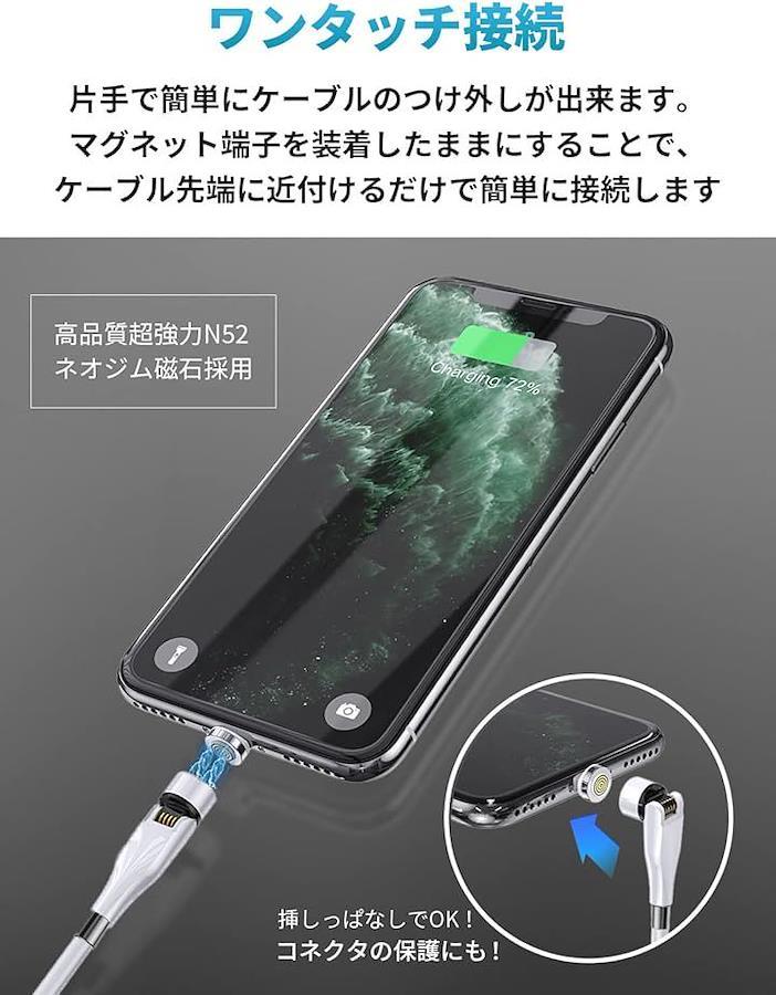 「Magic Cable特許」「マグネット端子特許」を用いた便利なマグネット充電ケーブル。