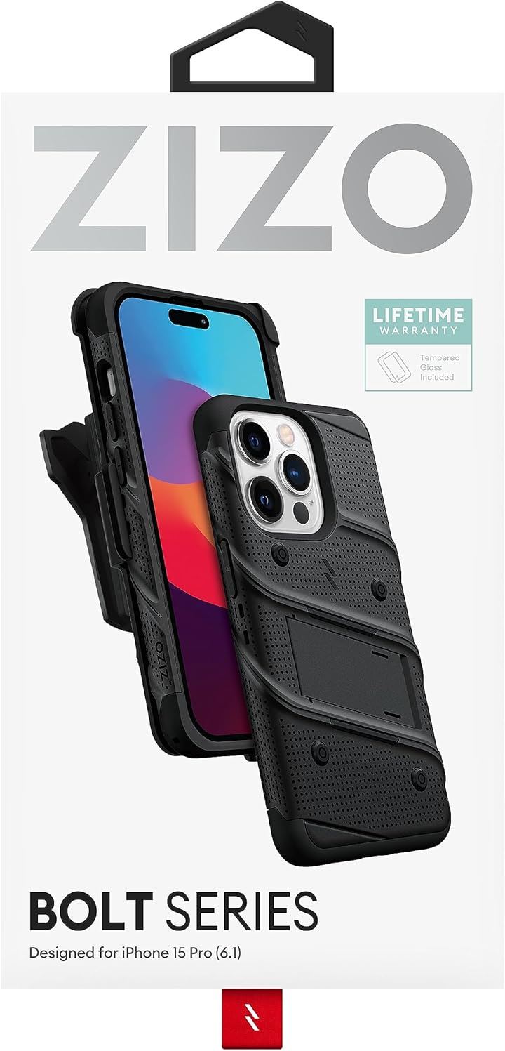 ブランド:Zizo (米国)、対応機種:AppleiPhone 15 Pro (6.1インチ)(2023年発売)、商品内容:ケース本体、液晶保護ガラス、ランヤード、各1pcs、(*iPhone15には適合しません)